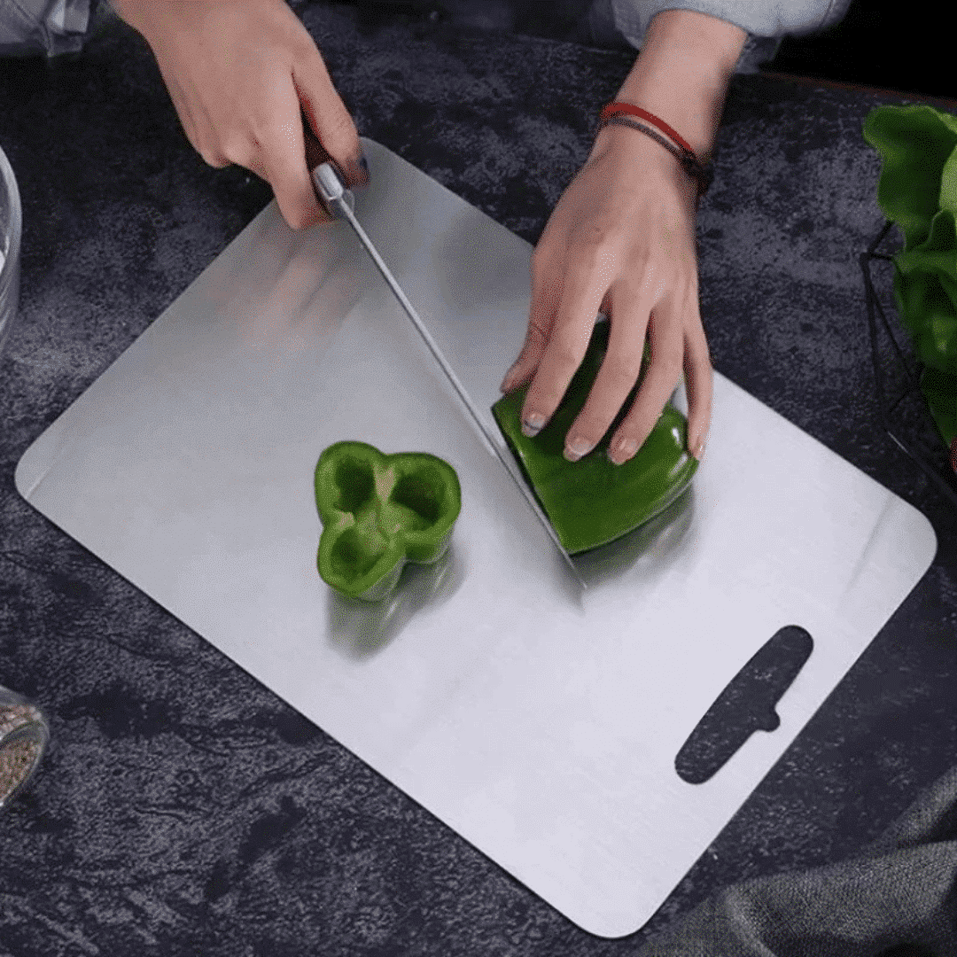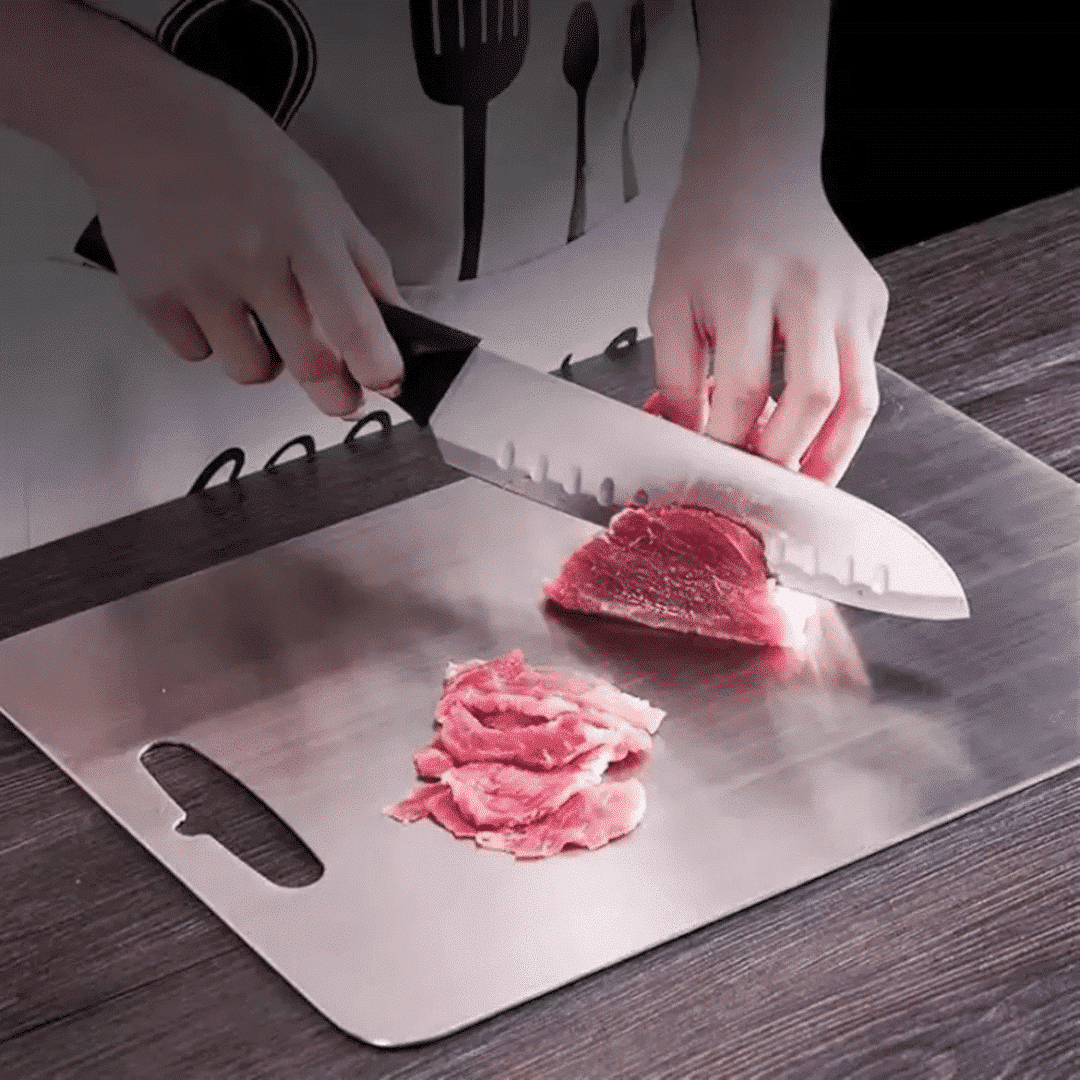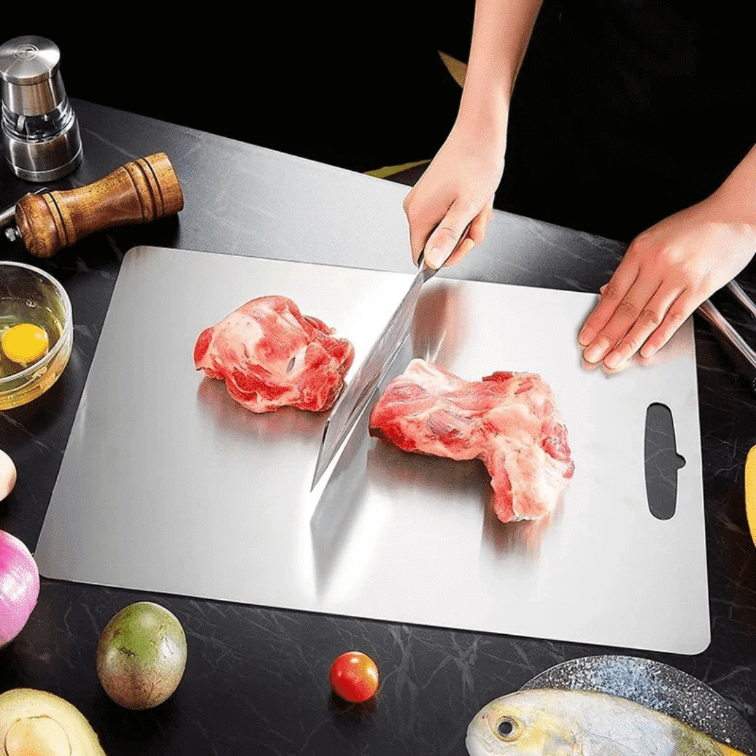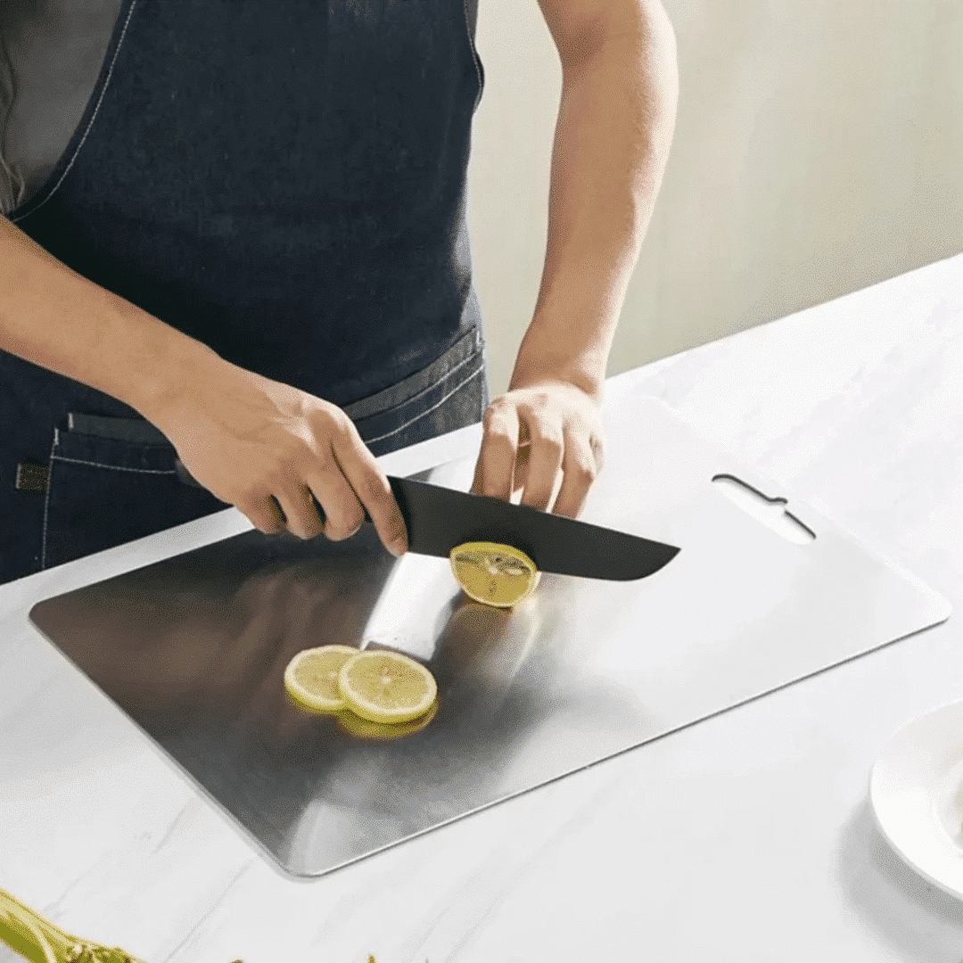 The Cuttivo Ultra Cutting Board is a revolutionary kitchen essential featuring a titanium-coated, non-porous surface that blocks bacteria, odors, and stains for unmatched hygiene.